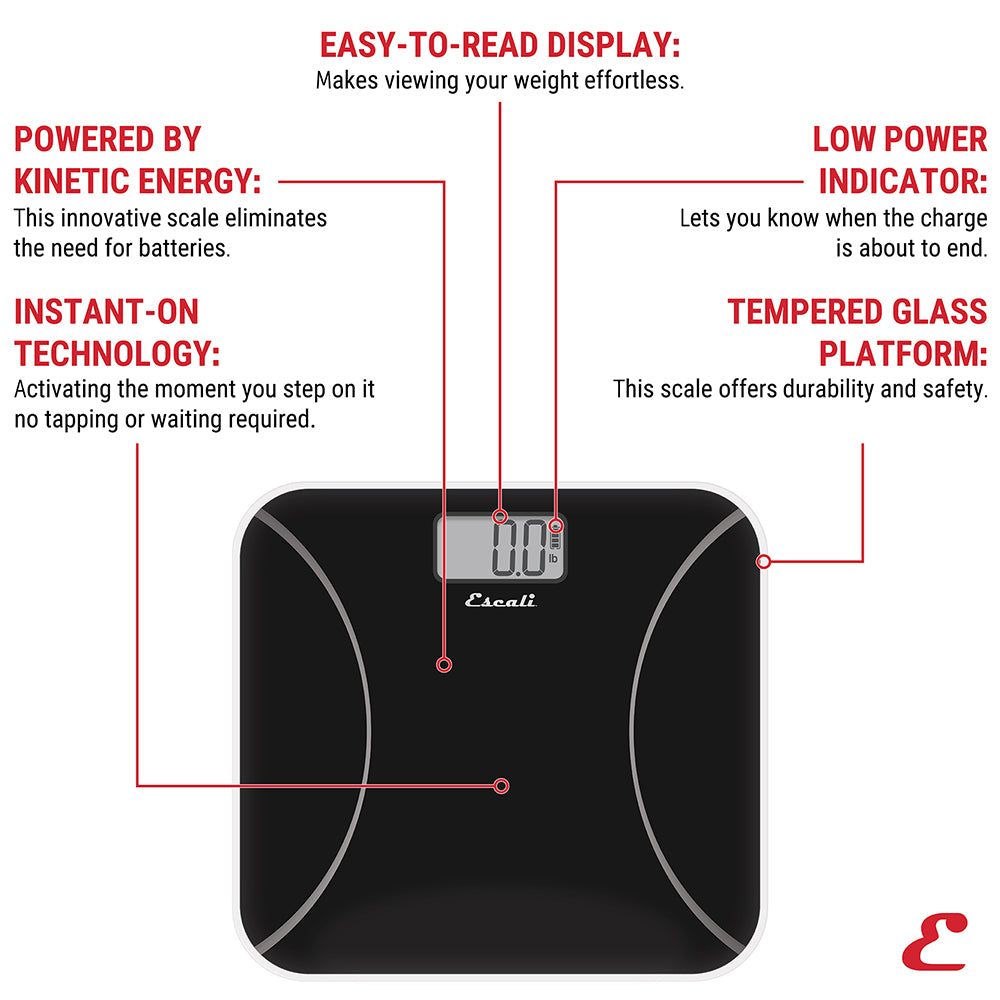 Experience a smarter, more sustainable way to track your health with the Escali Kinetic Bathroom Scale. Powered by kinetic energy, this innovative scale eliminates the need for batteries—simply step on and it’s ready to weigh. With this battery-free design, you're not only making a smarter choice for your home, but you're also helping reduce waste and your carbon footprint. In addition to being eco-friendly, its compact and lightweight design makes it easy to store in tight spaces, making it perfect for any home.